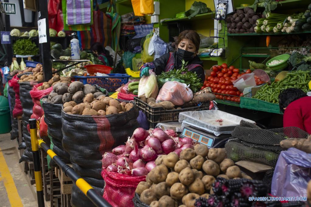 LIMA, 23 junio, 2022 (Xinhua) -- Una vendedora selecciona sus productos en un puesto de venta de verduras en el Mercado de Surquillo, en Lima, Perú, el 23 de junio de 2022. (Xinhua/Mariana Bazo)