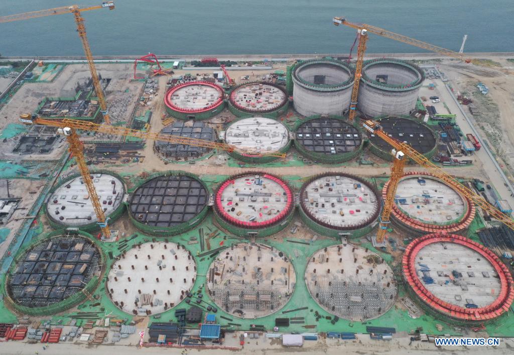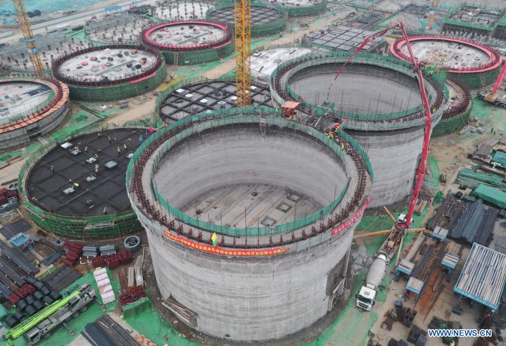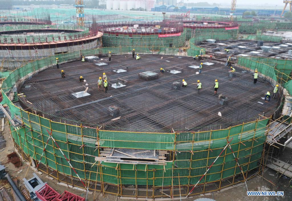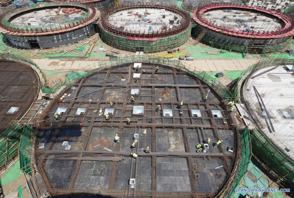 QINHUANGDAO, 23 junio, 2022 (Xinhua) -- Imagen del 23 de junio de 2022 del sitio de construcción del proyecto base de reserva de granos del distrito de Haigang del Central Grain Reserve Qinhuangdao Direct Warehouse Co., Ltd. afiliado al Grupo de Reserva de Granos de China (Sinograin), en Qinhuangdao, en la provincia de Hebei, en el norte de China. El proyecto cubre un área total de 550 mu (cerca de 36,67 hectáreas), con una capacidad dise?ada de almacenamiento de granos de 810.000 toneladas. (Xinhua/Yang Shiyao)