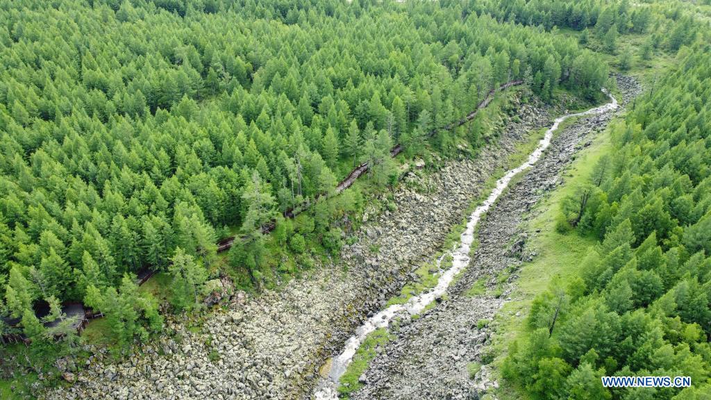 ARXAN, 24 junio, 2022 (Xinhua) -- Vista aérea del 24 de junio de 2022 del Parque Forestal Nacional Arxan, en la región autónoma de Mongolia Interior, en el norte de China. (Xinhua/Bei He)