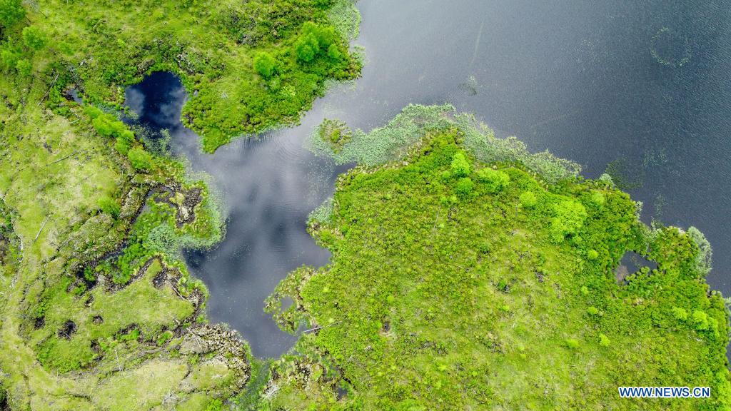 ARXAN, 24 junio, 2022 (Xinhua) -- Vista panorámica aérea del 24 de junio de 2022 del lago Wusulangzi en el Parque Forestal Nacional Arxan, en la región autónoma de Mongolia Interior, en el norte de China. (Xinhua/Wang Zecong)