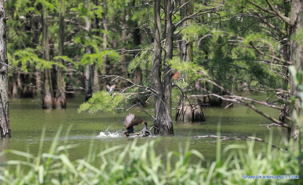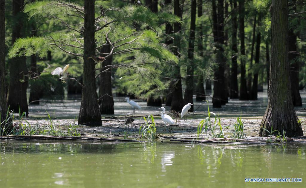 CHUZHOU, 25 junio, 2022 (Xinhua) -- Imagen del 25 de junio de 2022 de aves en el Parque Nacional de Humedales del Lago Chishan en Chuzhou, en la provincia de Anhui, en el este de China. (Xinhua/Cao Li)