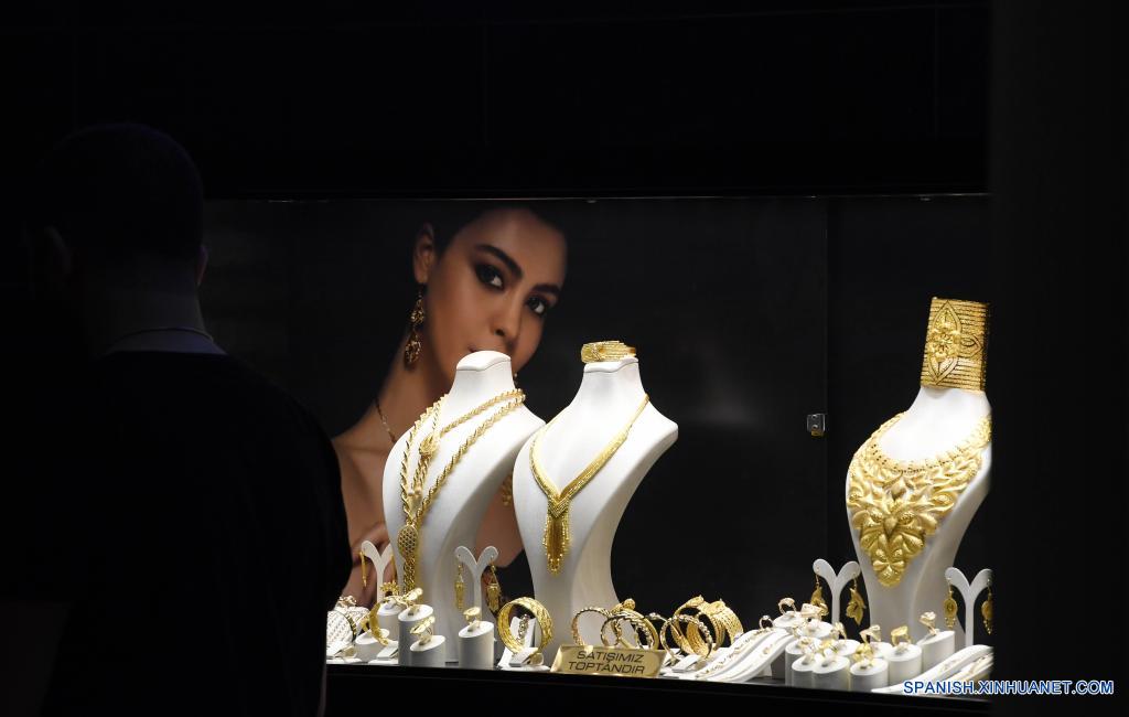 ESTAMBUL, 25 junio, 2022 (Xinhua) -- Imagen del 21 de junio de 2022 de adornos de oro en una tienda en Estambul, Turquía. (Xinhua/Shadati)