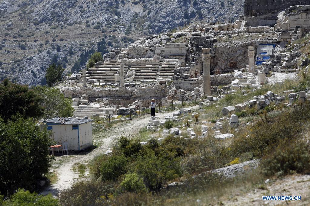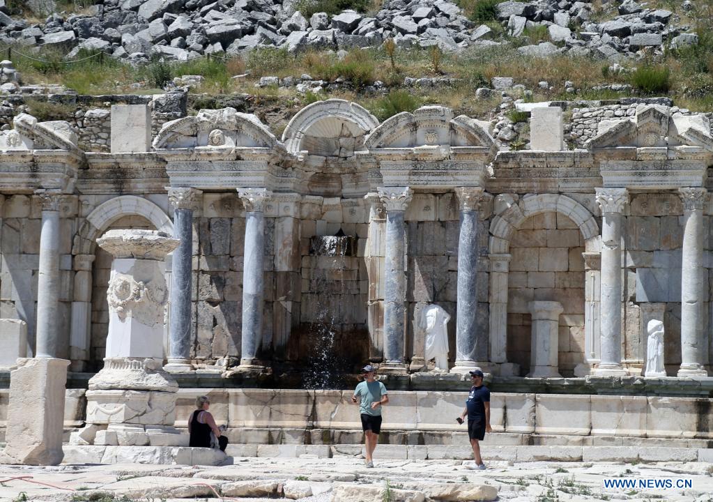 ANKARA, 26 junio, 2022 (Xinhua) -- Imagen del 25 de junio de 2022 de visitantes caminando por la ciudad antigua de Sagalassos, cerca del poblado de Aglasun, en la provincia de Burdur, Turquía. (Xinhua/Mustafa Kaya)