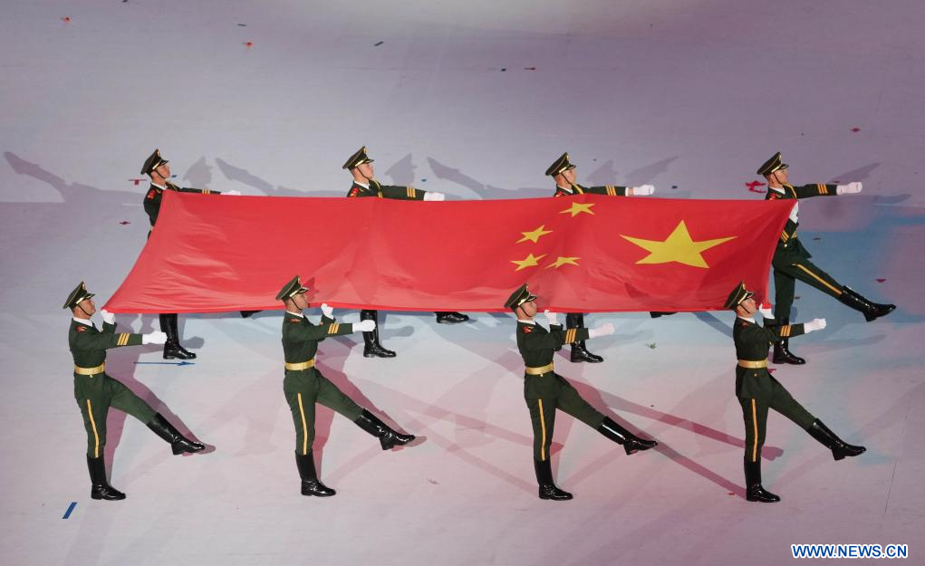 CHENGDU, 28 julio, 2023 (Xinhua) -- La bandera nacional china es vista durante la ceremonia de apertura de la 31ª edición de verano de los Juegos Mundiales Universitarios de la FISU, en Chengdu, en la provincia de Sichuan, en el suroeste de China, el 28 de julio de 2023. (Xinhua/Jia Haocheng)