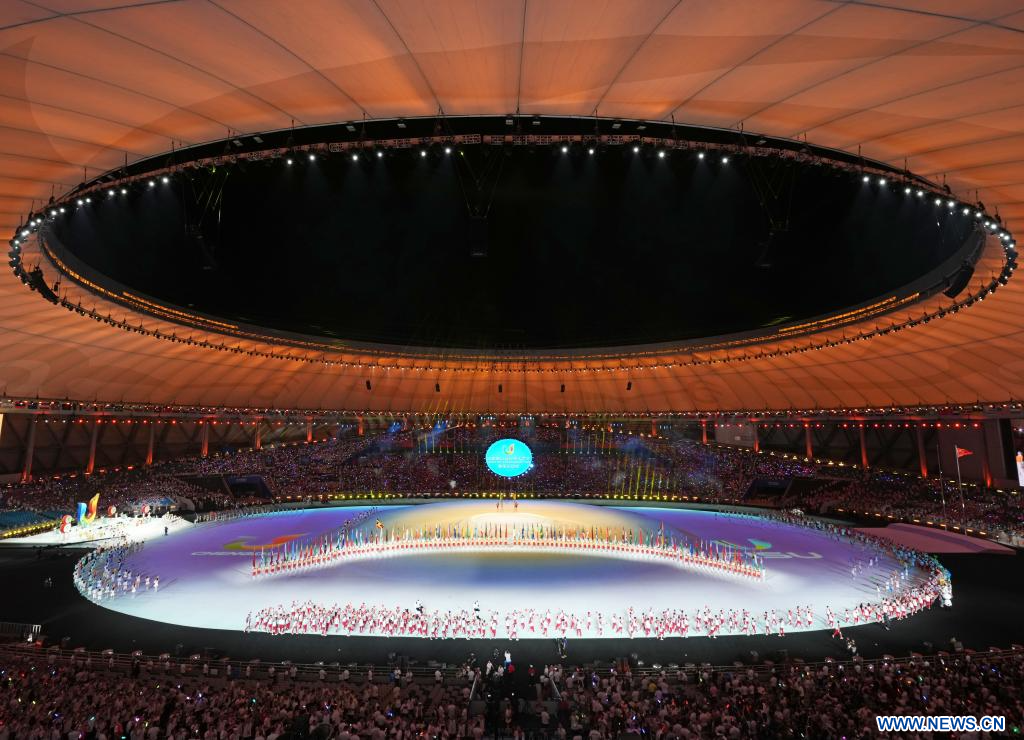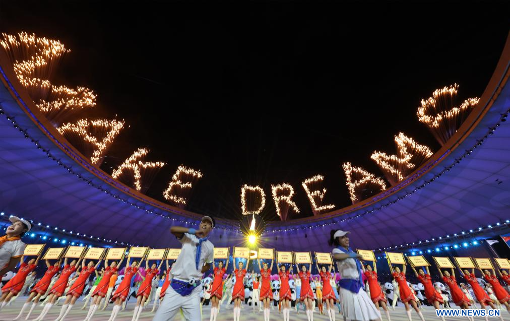 CHENGDU, 28 julio, 2023 (Xinhua) -- Un espectáculo es llevado a cabo durante la ceremonia de apertura de la 31ª edición de verano de los Juegos Mundiales Universitarios de la FISU, en Chengdu, provincia de Sichuan, en el suroeste de China, el 28 de julio de 2023. (Xinhua/Li Xin)