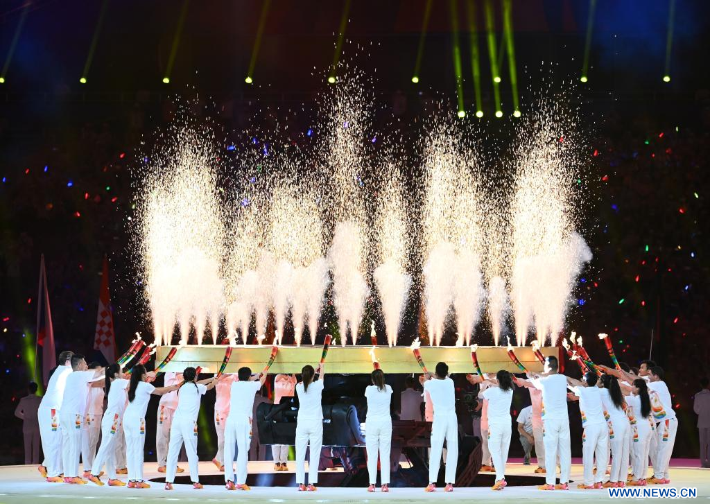 CHENGDU, 28 julio, 2023 (Xinhua) -- El pebetero es encendido durante la ceremonia de apertura de la 31ª edición de verano de los Juegos Mundiales Universitarios de la FISU, en Chengdu, en la provincia de Sichuan, en el suroeste de China, el 28 de julio de 2023. (Xinhua/Zhang Bowen)
