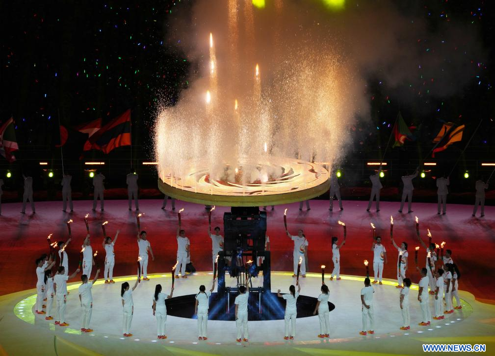 CHENGDU, 28 julio, 2023 (Xinhua) -- El pebetero es encendido durante la ceremonia de apertura de la 31ª edición de verano de los Juegos Mundiales Universitarios de la FISU, en Chengdu, en la provincia de Sichuan, en el suroeste de China, el 28 de julio de 2023. (Xinhua/Li Xin)