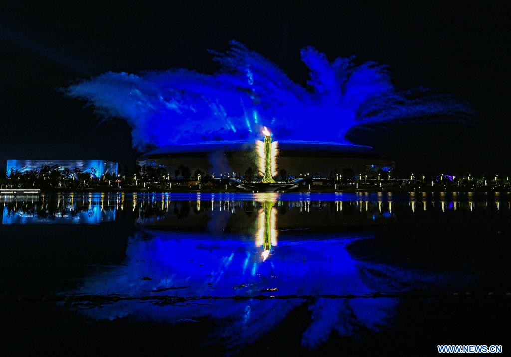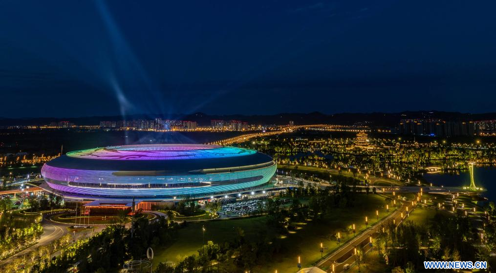 CHENGDU, 28 julio, 2023 (Xinhua) -- El estadio principal del Parque Deportivo del Lago Dong'an es iluminado durante la ceremonia de apertura de la 31ª edición de verano de los Juegos Mundiales Universitarios de la FISU, en Chengdu, en la provincia de Sichuan, en el suroeste de China, el 28 de julio de 2023. (Xinhua/Huang Wei)