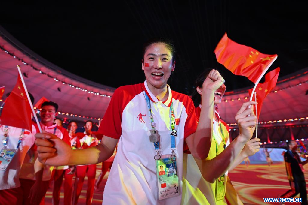 CHENGDU, 28 julio, 2023 (Xinhua) -- Miembros de la delegación de China marchan durante la ceremonia de apertura de la 31ª edición de verano de los Juegos Mundiales Universitarios de la FISU, en Chengdu, en la provincia de Sichuan, en el suroeste de China, el 28 de julio de 2023. (Xinhua/Liu Kun)