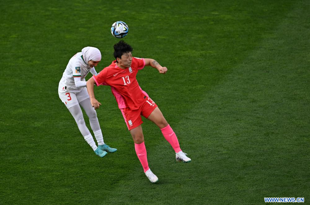 ADELAIDA, 30 julio, 2023 (Xinhua) -- Zineb Redouani (d), de Marruecos, compite con Choe Yuri, de República de Corea, durante el partido del Grupo H entre República de Corea y Marruecos en la Copa Mundial Femenina de la FIFA Australia y Nueva Zelanda 2023, en Adelaida, Australia, el 30 de julio de 2023. (Xinhua/Ding Ting)