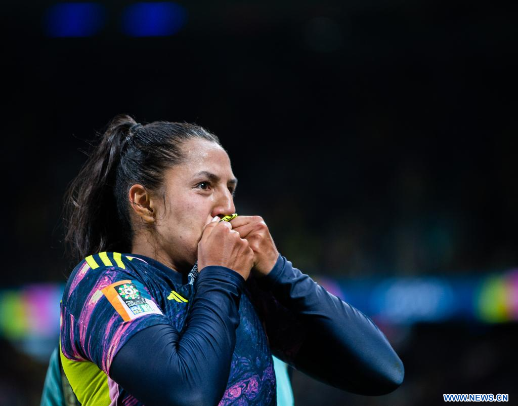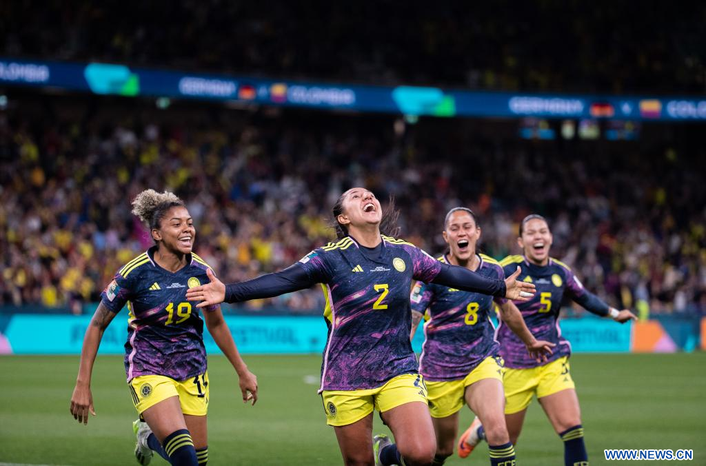 SIDNEY, 30 julio, 2023 (Xinhua) -- Manuela Vanegas Cataño (c), de Colombia, festeja su anotación durante el partido del Grupo H entre Alemania y Colombia en la Copa Mundial Femenina de la FIFA Australia y Nueva Zelanda 2023, en Sídney, Australia, el 30 de julio de 2023. (Xinhua/Hu Jingchen)