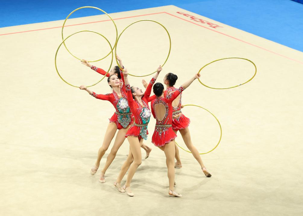 CHENGDU, 29 julio, 2023 (Xinhua) -- Adelina Beljajeva, de Estonia, compite durante la Rotación 1 del Grupo A de la Final Individual All-Around de Gimnasia Rítmica en la 31ª edición de verano de los Juegos Mundiales Universitarios de la FISU, en Chengdu, en la provincia de Sichuan, en el suroeste de China, el 29 de julio de 2023. (Xinhua/Wang Jingqiang)