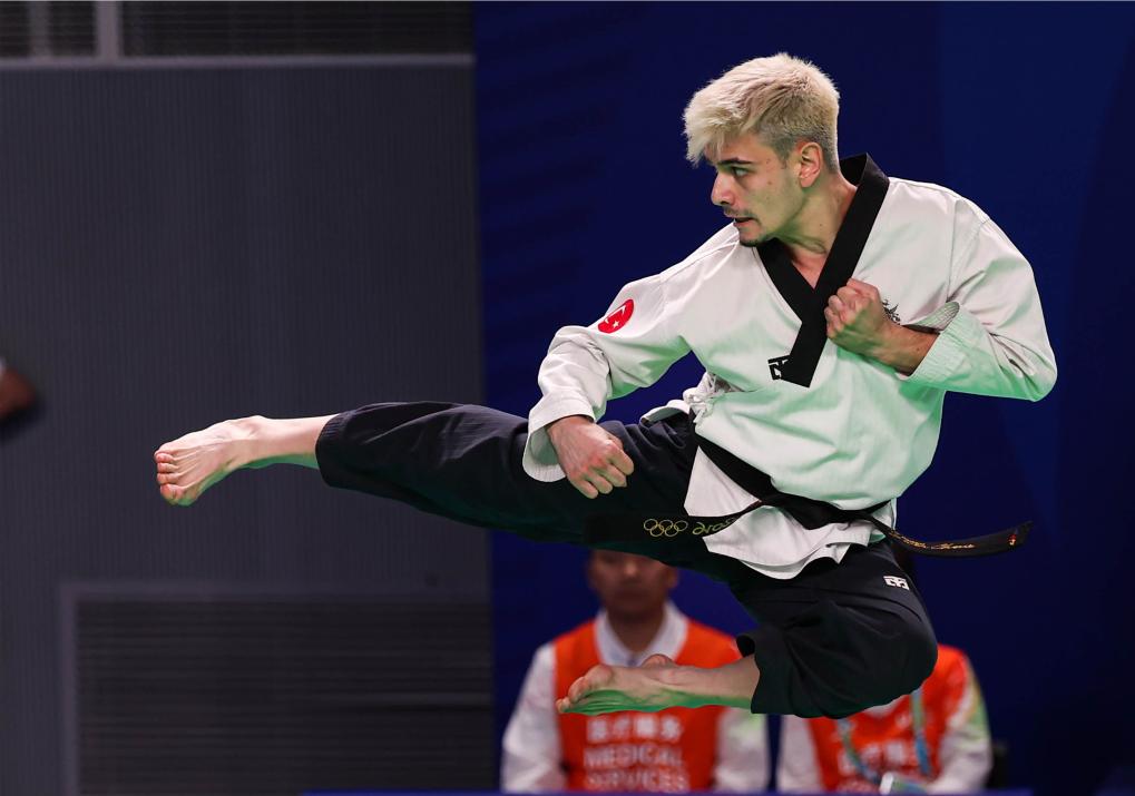 CHENGDU, 29 julio, 2023 (Xinhua) -- Emir Yilmaz, de Turquía, compite durante la final de poomsae individual masculino de Taekwondo en la 31ª edición de verano de los Juegos Mundiales Universitarios de la FISU, en Chengdu, en la provincia de Sichuan, en el suroeste de China, el 29 de julio de 2023. (Xinhua/Jiang Hongjing)