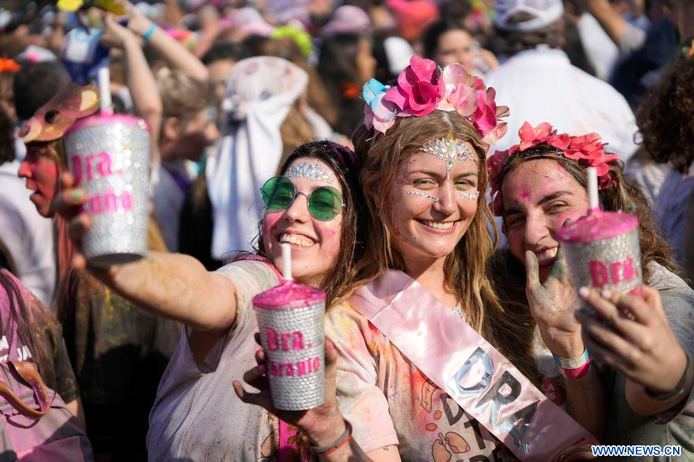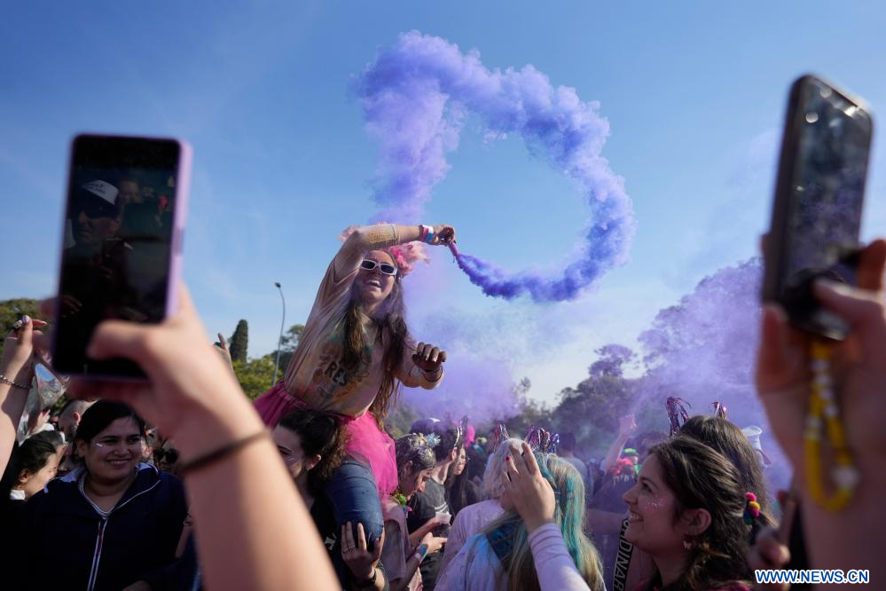 MONTEVIDEO, 31 julio, 2023 (Xinhua) -- Mujeres participan en un festejo masivo de estudiantes de medicina recien recibidos en el parque Batlle, en Montevideo, capital de Uruguay, el 31 de julio de 2023. (Xinhua/Nicolás Celaya)