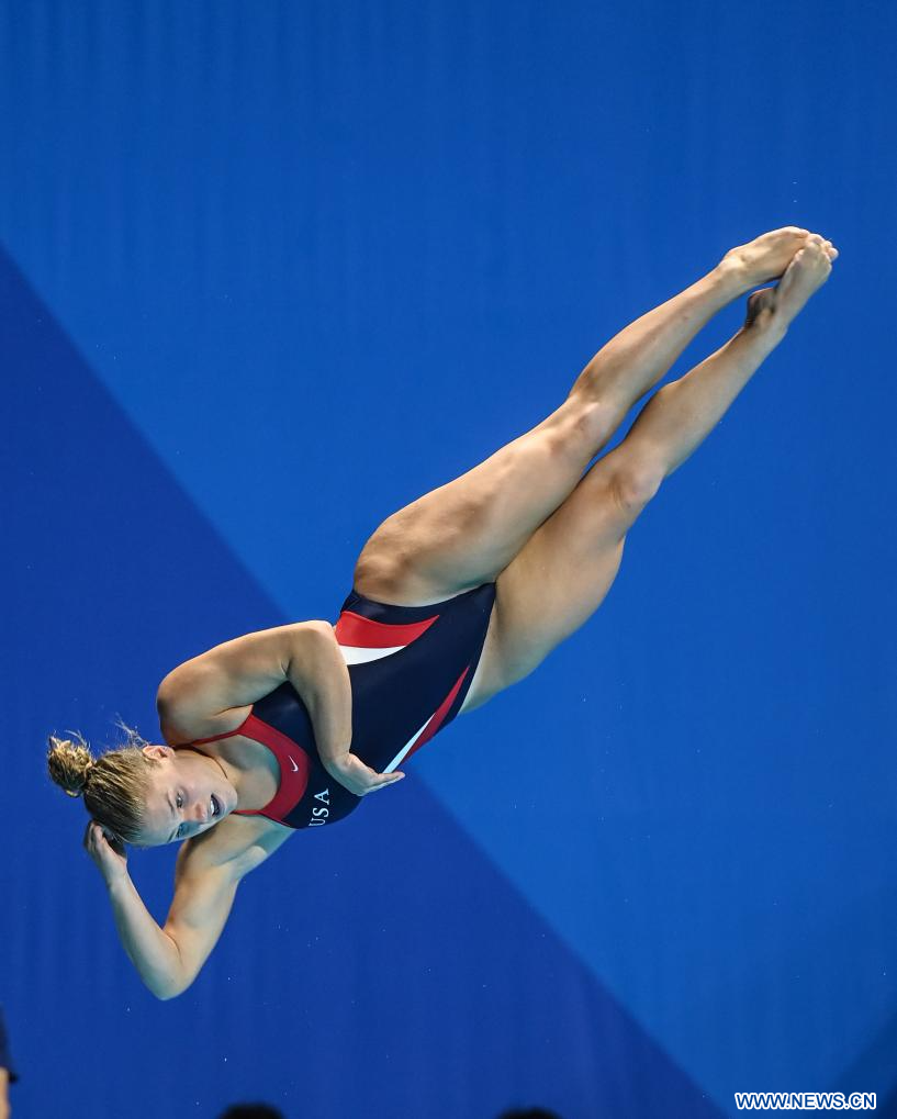 CHENGDU, 1 agosto, 2023 (Xinhua) -- Sophia Grace Verzyl, de Estados Unidos, compite durante la final femenina de trampolín de 1m de clavados en la 31ª edición de verano de los Juegos Mundiales Universitarios de la FISU, en Chengdu, en la provincia de Sichuan, en el suroeste de China, el 1 de agosto de 2020. (Xinhua/Liu Kun)