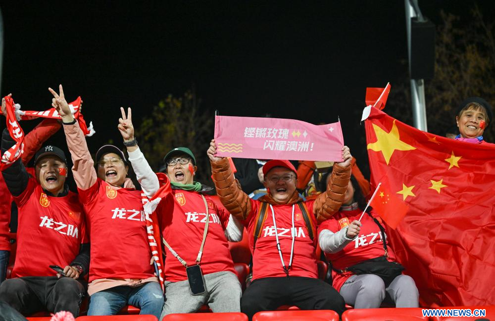 ADELAIDA, 1 agosto, 2023 (Xinhua) -- Aficionados animan previo al partido del Grupo D entre China e Inglaterra en la Copa Mundial Femenina de la FIFA Australia y Nueva Zelanda 2023, en Adelaida, Australia, el 1 de agosto de 2023. (Xinhua/Mao Siqian)