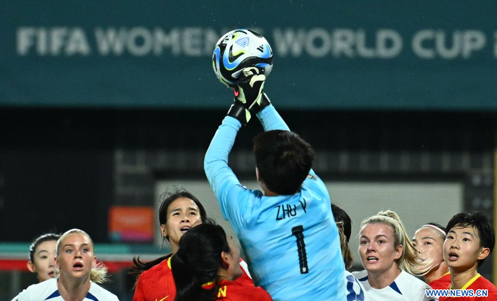 ADELAIDA, 1 agosto, 2023 (Xinhua) -- La guardameta, Zhu Yu (arriba), de China, realiza una atajada durante el partido del Grupo D entre China e Inglaterra en la Copa Mundial Femenina de la FIFA Australia y Nueva Zelanda 2023, en Adelaida, Australia, el 1 de agosto de 2023. (Xinhua/Li Yibo)