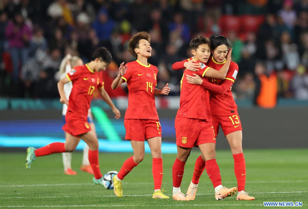 ADELAIDA, 1 agosto, 2023 (Xinhua) -- Wang Shuang (2-d), festeja su anotación de tiro penal con sus compañeras durante el partido del Grupo D entre China e Inglaterra en la Copa Mundial Femenina de la FIFA Australia y Nueva Zelanda 2023, en Adelaida, Australia, el 1 de agosto de 2023. (Xinhua/Zhang Chen)
