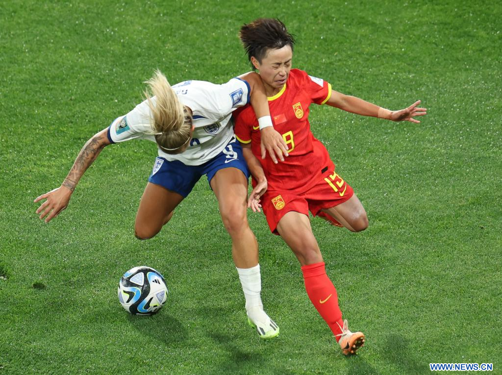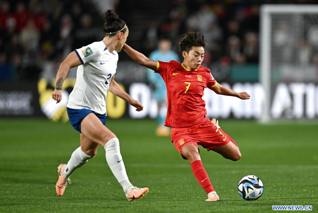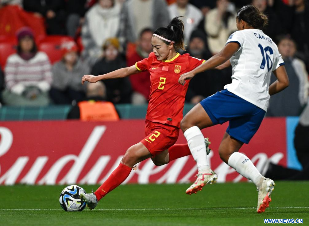 ADELAIDA, 1 agosto, 2023 (Xinhua) -- Li Mengwen (i), de China, se abre paso durante el partido del Grupo D entre China e Inglaterra en la Copa Mundial Femenina de la FIFA Australia y Nueva Zelanda 2023, en Adelaida, Australia, el 1 de agosto de 2023. (Xinhua/Mao Siqian)