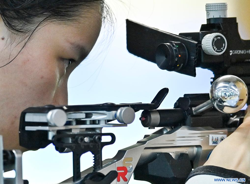 CHENGDU, 1 agosto, 2023 (Xinhua) -- Xing Hang, de China, compite durante la final femenina de tiro por equipos de rifle de 50m 3 posiciones en la 31ª edición de verano de los Juegos Mundiales Universitarios de la FISU, en Chengdu, en la provincia de Sichuan, en el suroeste de China, el 1 de agosto de 2023. (Xinhua/Cao Yiming)