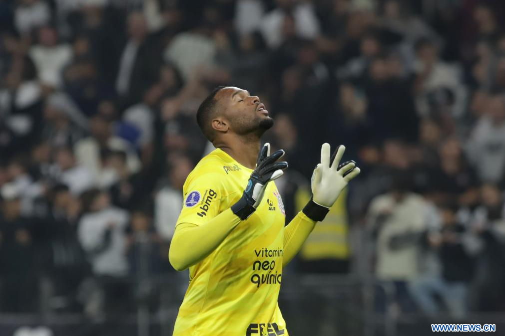 SAO PAULO, 2 agosto, 2023 (Xinhua) -- Imagen del 1 de agosto de 2023 del guardameta Carlos Miguel, de Corinthians de Brasil, festejando una anotación durante el partido de ida de los octavos de final de la Copa Conmebol Sudamericana 2023 ante Newell's Old Boys de Argentina, celebrado en el Estadio Neo Química Arena, en Sao Paulo, Brasil. (Xinhua/Rahel Patrasso