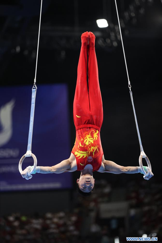 CHENGDU, 2 agosto, 2023 (Xinhua) -- Zou Jingyuan, de China, compite en el evento de Anillos de la Final por Equipos de Gimnasia Artística Masculina y competencia de la Subdivisión 4 de Calificación Individual en la 31ª edición de verano de los Juegos Mundiales Universitarios de la FISU, en Chengdu, en la provincia de Sichuan, en el suroeste de China, el 2 de agosto de 2023. (Xinhua/Zhang Liyun)