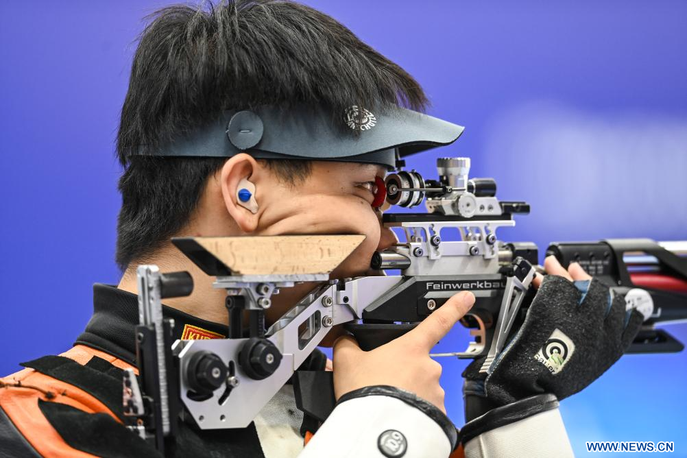 CHENGDU, 2 agosto, 2023 (Xinhua) -- Song Buhan, de China, compite durante la final de Equipos Mixtos de Tiro con Rifle de Aire de 10m en la 31ª edición de verano de los Juegos Mundiales Universitarios de la FISU, en Chengdu, en la provincia de Sichuan, en el suroeste de China, el 2 de agosto de 2023. (Xinhua/Cao Yiming)