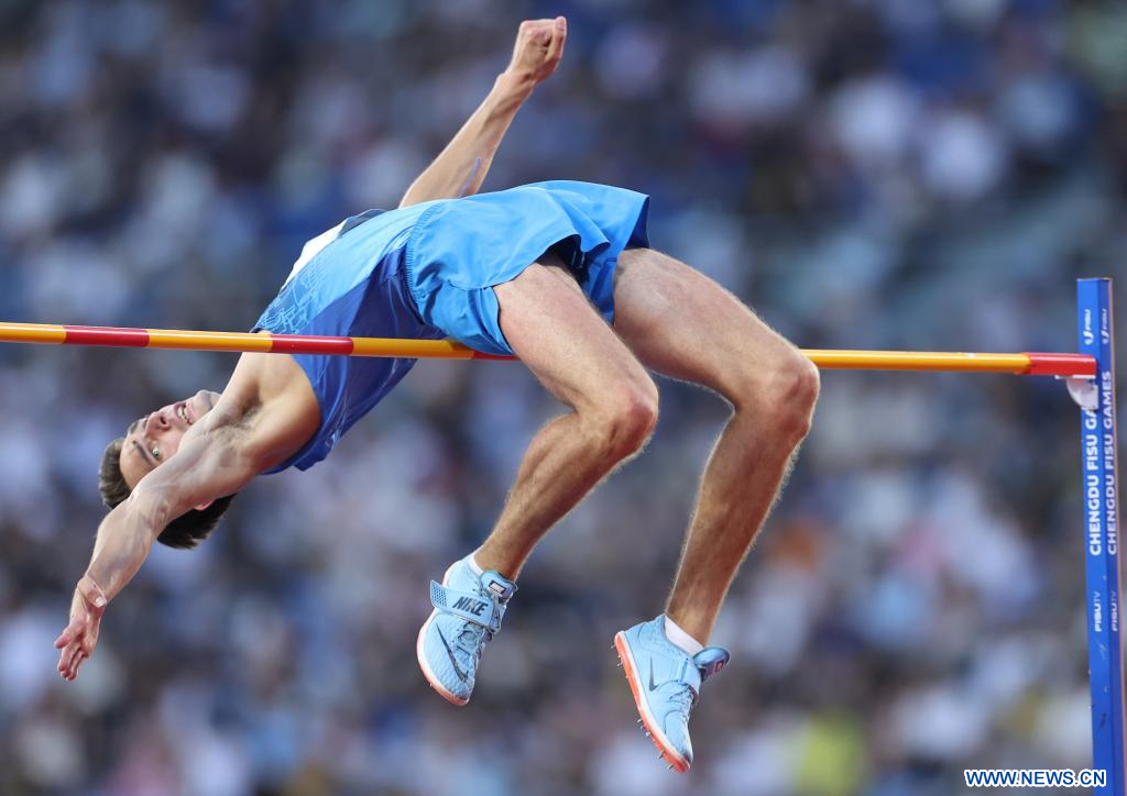 CHENGDU, 3 agosto, 2023 (Xinhua) -- Vladyslav Lavskyi, de Ucrania, compite durante la final masculina de salto de altura de atletismo en la 31ª edición de verano de los Juegos Mundiales Universitarios de la FISU, en Chengdu, en la provincia de Sichuan, en el suroeste de China, el 3 de agosto de 2023. (Xinhua/Jia Haocheng)