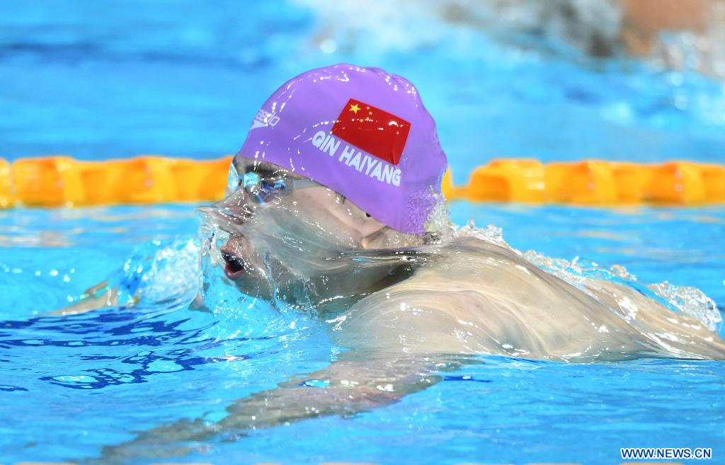 CHENGDU, 3 agosto, 2023 (Xinhua) -- Qin Haiyang, de China, compite durante la semifinal masculina de 200 metros estilo pecho de natación en la 31ª edición de verano de los Juegos Mundiales Universitarios de la FISU, en Chengdu, en la provincia de Sichuan, en el suroeste de China, el 3 de agosto de 2023 (Xinhua/Chen Zeguo)