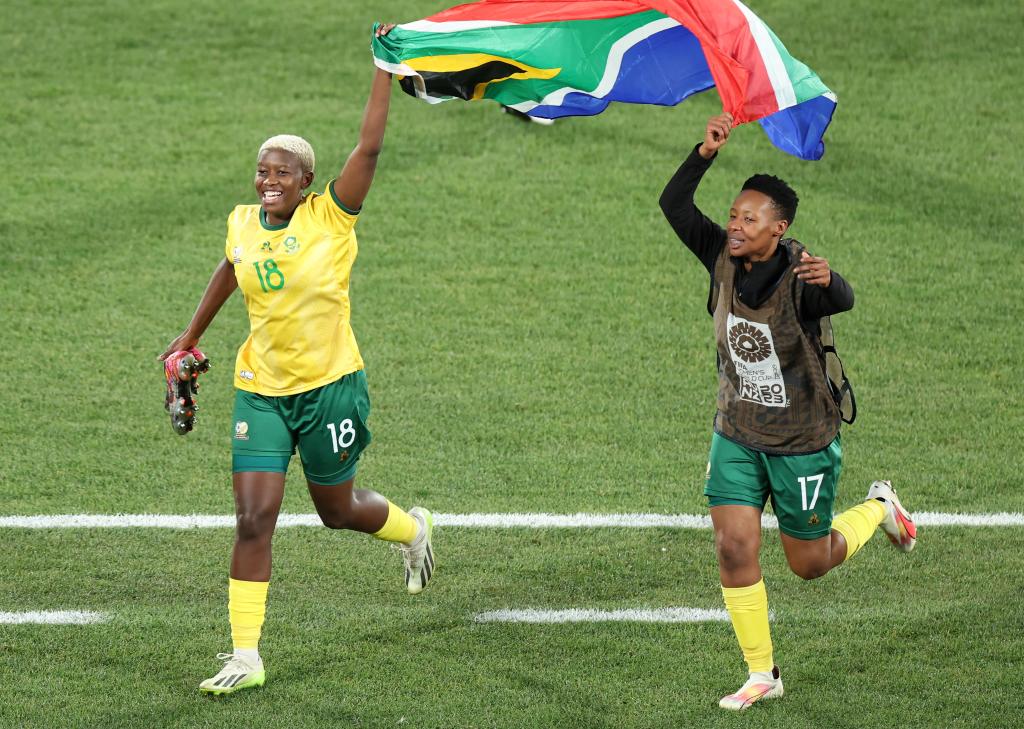 WELLINGTON, 2 agosto, 2023 (Xinhua) -- Sibulele Holweni (i) y Melinda Kgadiete, de Sudáfrica, festejan al término del partido del Grupo G entre Sudáfrica e Italia en la Copa Mundial Femenina de la FIFA Australia y Nueva Zelanda 2023, en Wellington, Nueva Zelanda, el 2 de agosto de 2023. (Xinhua/Qin Lang)