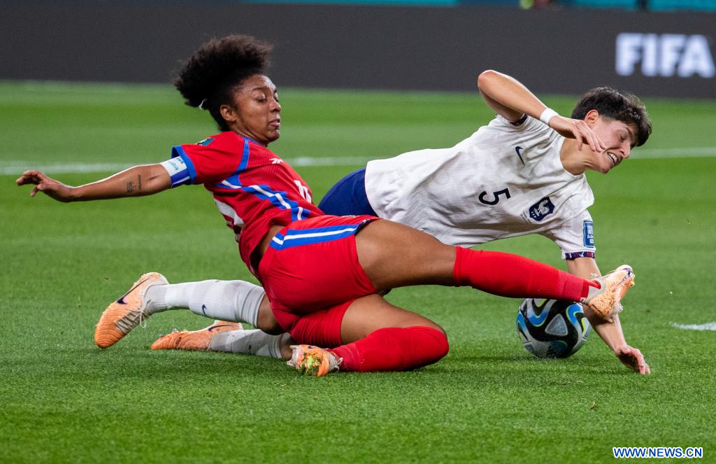 SIDNEY, 2 agosto, 2023 (Xinhua) -- Marta Cox (i), de Panamá, compite con Elisa De Almeida, de Francia, durante el partido del Grupo F entre Panamá y Francia en la Copa Mundial Femenina de la FIFA Australia y Nueva Zelanda 2023, en Sídney, Australia, el 2 de agosto de 2023. (Xinhua/Hu Jingchen)