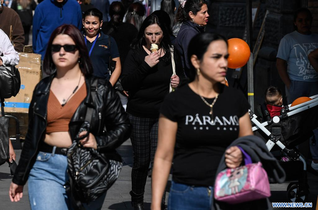 SANTIAGO, 4 agosto, 2023 (Xinhua) -- Una mujer come un helado durante una ola de calor, en Santiago, capital de Chile, el 4 de agosto de 2023. (Xinhua/Jorge Villegas)