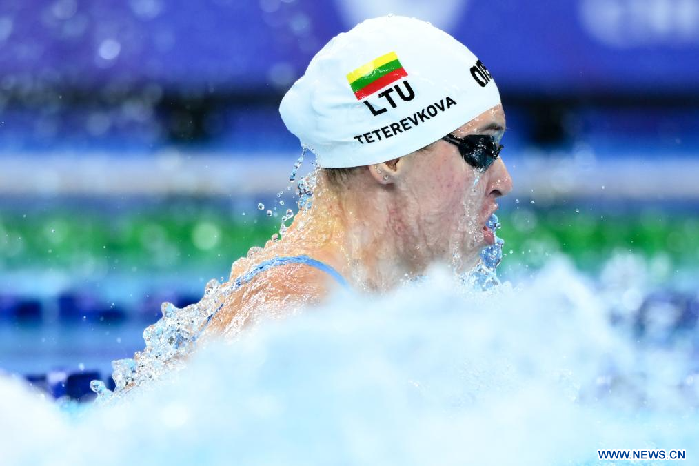 CHENGDU, 7 agosto, 2023 (Xinhua) -- Kotryna Teterevkovav, de Lituania, compite durante la final femenina de 50 metros estilo pecho de natación en la 31ª edición de verano de los Juegos Mundiales Universitarios de la FISU, en Chengdu, en la provincia de Sichuan, en el suroeste de China, el 7 de agosto de 2023. (Xinhua/Wu Gang)