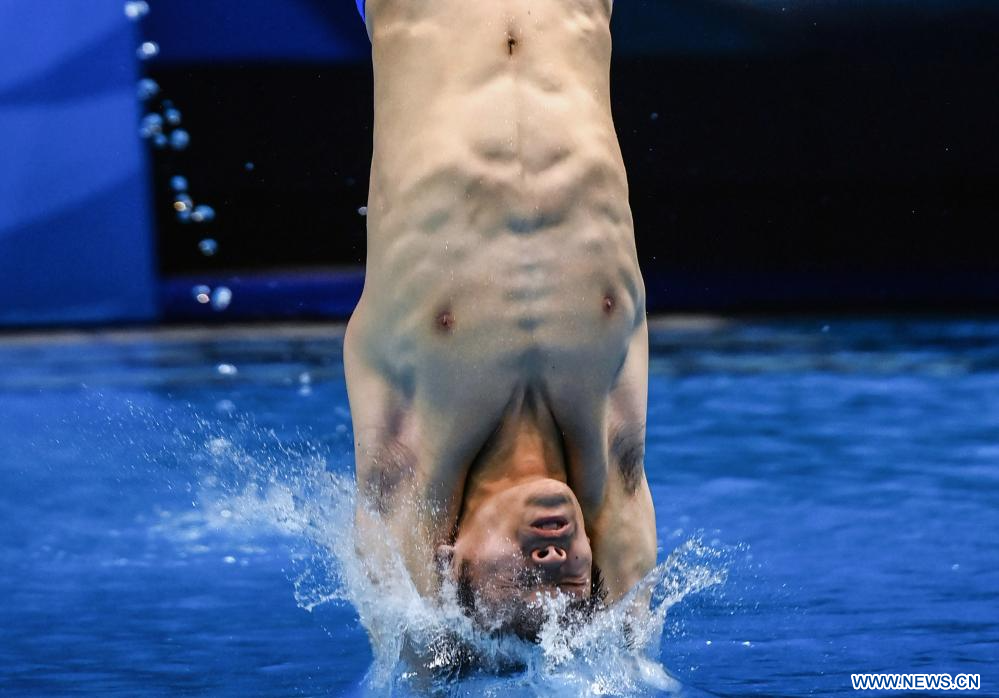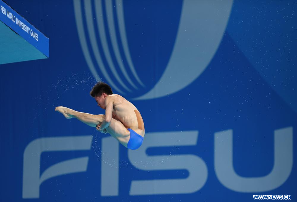 CHENGDU, 7 agosto, 2023 (Xinhua) -- Huang Zigan, de China, compite durante la final masculina de clavados desde plataforma de 10 metros, en la 31ª edición de verano de los Juegos Mundiales Universitarios de la FISU, en Chengdu, en la provincia de Sichuan, en el suroeste de China, el 7 de agosto de 2023. (Xinhua/Wang Xiang)