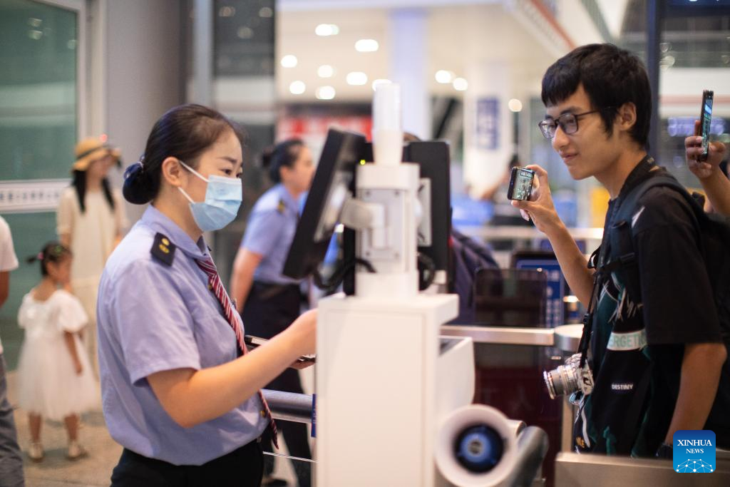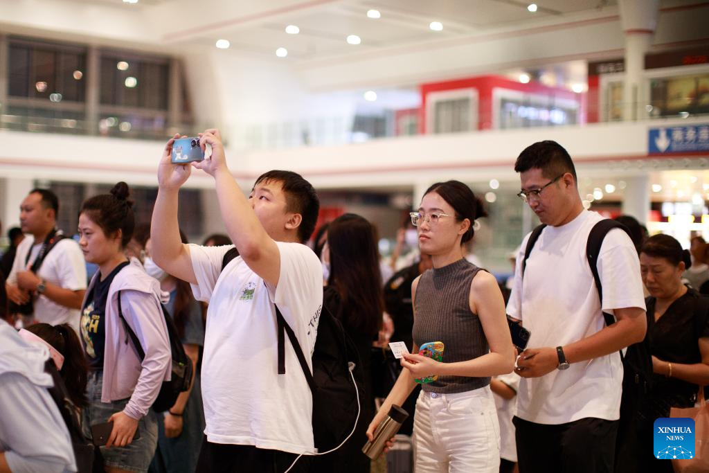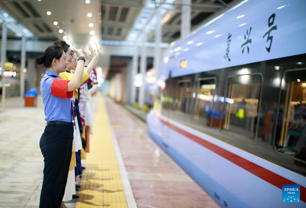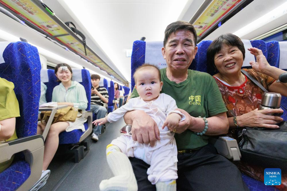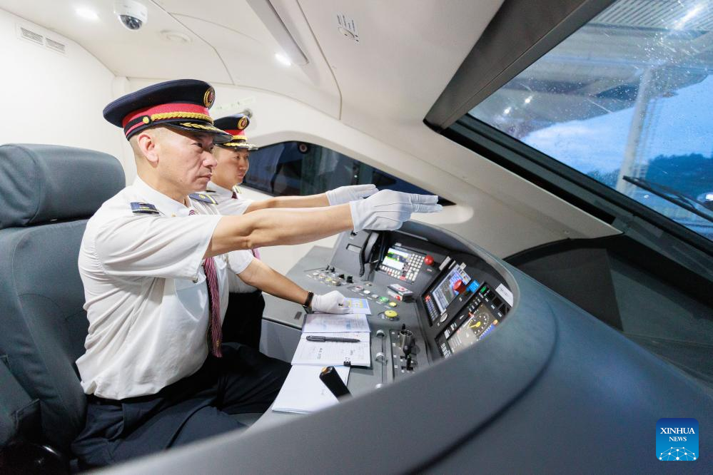 GUIYANG, 8 ago (Xinhua) -- Un tren bala modelo Fuxing partió hoy martes por la mañana desde Guiyang, capital de la suroccidental provincia china de Guizhou, marcando oficialmente el inicio de las operaciones completas de la sección Guiyang-Libo.