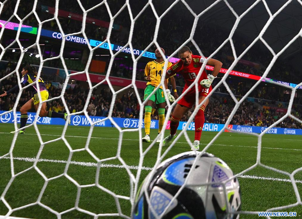 MELBOURNE, 8 agosto, 2023 (Xinhua) -- La guardameta Rebecca Spencer (d), de Jamaica, reacciona después de una anotación de Catalina Usme (i), de Colombia, durante el partido de octavos de final entre Colombia y Jamaica en la Copa Mundial Femenina de la FIFA Australia y Nueva Zelanda 2023, en Melbourne, Australia, el 8 de agosto de 2023. (Xinhua/Ding Xu)