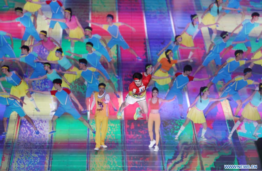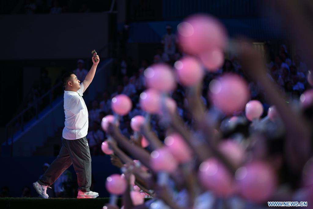 CHENGDU, 8 agosto, 2023 (Xinhua) -- Xue Xiao, sobreviviente del terremoto del 12 de mayo de 2008, realiza una presentación durante la ceremonia de clausura de la 31ª edición de verano de los Juegos Mundiales Universitarios de la FISU, en Chengdu, en la provincia de Sichuan, en el suroeste de China, el 8 de agosto de 2023. (Xinhua/Wang Xi)