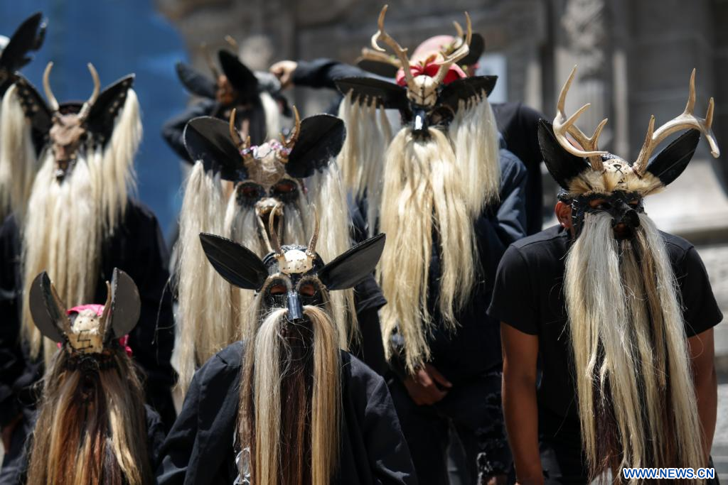 CIUDAD DE MÉXICO, 9 agosto, 2023 (Xinhua) -- Danzantes participan en un evento denominado "Megacalenda" realizado con motivo del Día Internacional de los Pueblos Indígenas, en la Ciudad de México, capital de México, el 9 de agosto de 2023. El Día Internacional de los Pueblos Indígenas se conmemora anualmente el 9 de agosto. (Xinhua/Francisco Cañedo)