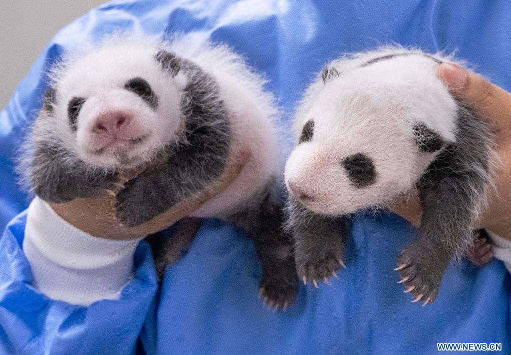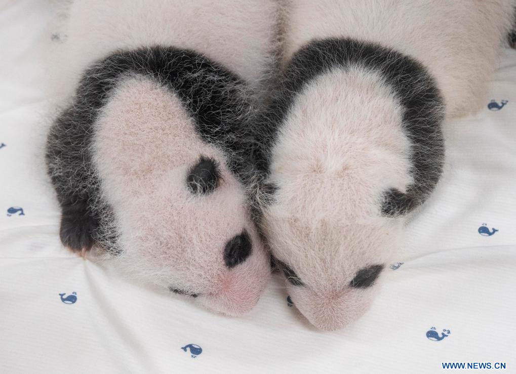 Hembras gemelas de panda gigante cumplen un mes en República de Corea