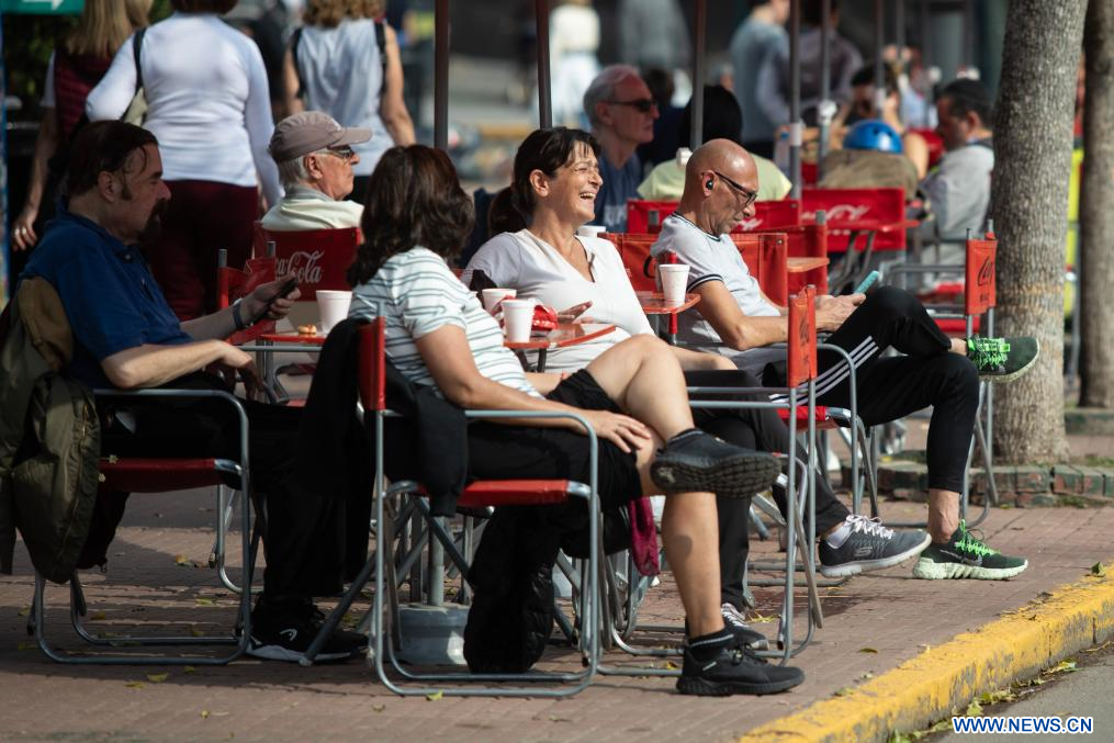 BUENOS AIRES, 6 agosto, 2023 (Xinhua) -- Una mujer reacciona en un bar al aire libre en los Bosques de Palermo, capital de Argentina, el 6 de agosto de 2023. (Xinhua/Martín Zabala)