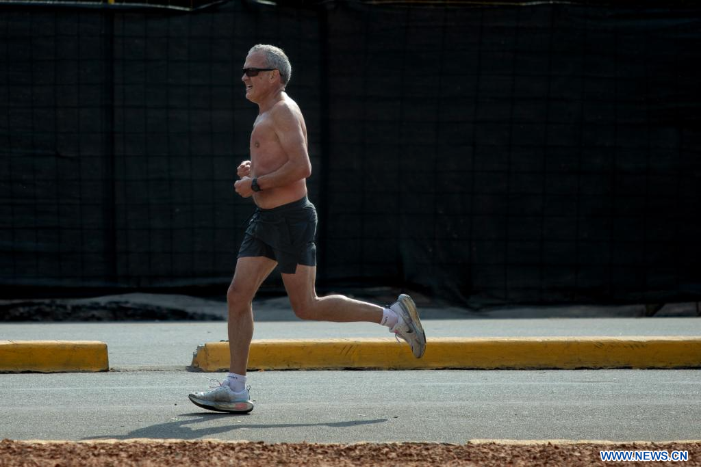 BUENOS AIRES, 6 agosto, 2023 (Xinhua) -- Un hombre corre en la pista aeróbica de los Bosques de Palermo, capital de Argentina, el 6 de agosto de 2023. (Xinhua/Martín Zabala)
