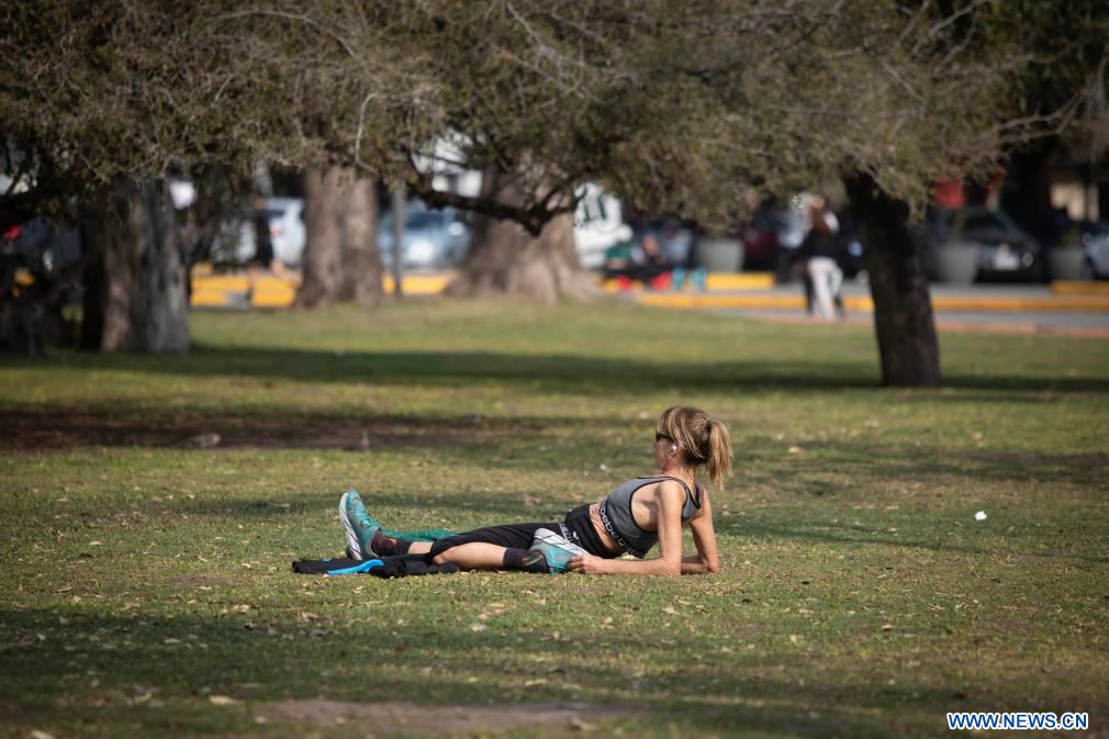 BUENOS AIRES, 6 agosto, 2023 (Xinhua) -- Una mujer descansa al sol en el Parque 3 de febrero, en la ciudad de Buenos Aires, capital de Argentina, el 6 de agosto de 2023. (Xinhua/Martín Zabala)
