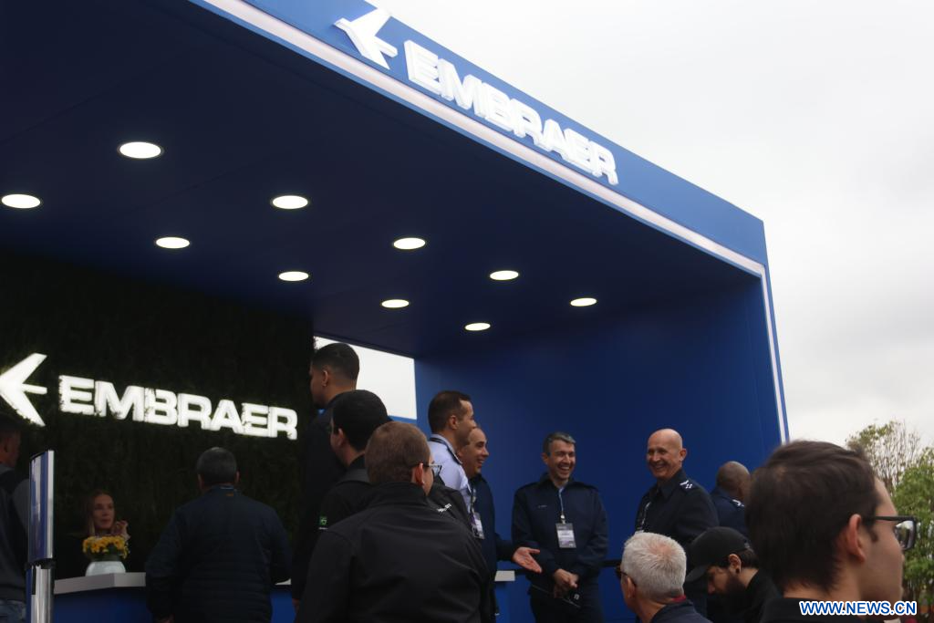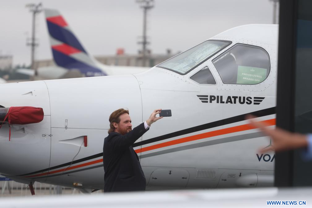 SAO PAULO, 8 agosto, 2023 (Xinhua) -- Personas visitan la 18 Exhibición y Conferencia de la Aviación Ejecutiva Latinoamericana LABACE 2023, en Sao Paulo, Brasil, el 8 de agosto de 2023. (Xinhua/Rahel Patrasso)