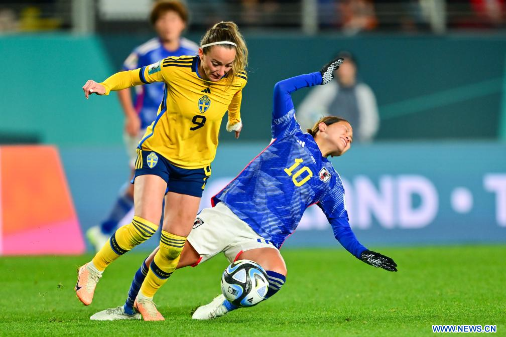 AUCKLAND, 11 agosto, 2023 (Xinhua) -- Stina Blackstenius (i), de Suecia, dispara durante el partido de cuartos de final entre Japón y Suecia en la Copa Mundial Femenina de la FIFA Australia y Nueva Zelanda 2023, en Auckland, Nueva Zelanda, el 11 de agosto de 2023. (Xinhua/Zhu Wei)