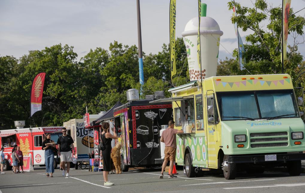 RICHMOND, 12 agosto, 2023 (Xinhua) -- Imagen del 11 de agosto de 2023 de personas visitando el Festival de la Fusión de Richmond, en Richmond, Columbia Británica, Canadá. El Festival de la Fusión de Richmond es un festival de camiones de comida en el que participan más de 20 camiones de comida que ofrecen diversos tipos de alimentos callejeros. El evento se lleva a cabo del 11 al 13 de agosto. (Xinhua/Liang Sen)