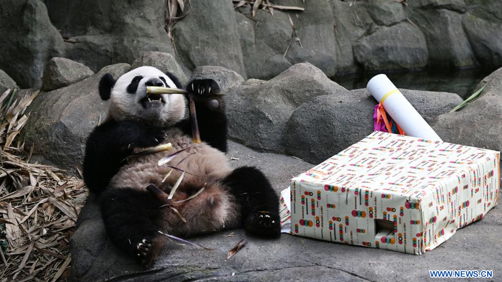 Singapur: Panda gigante Le Le disfruta de la comida en su segunda fiesta de cumplea?os