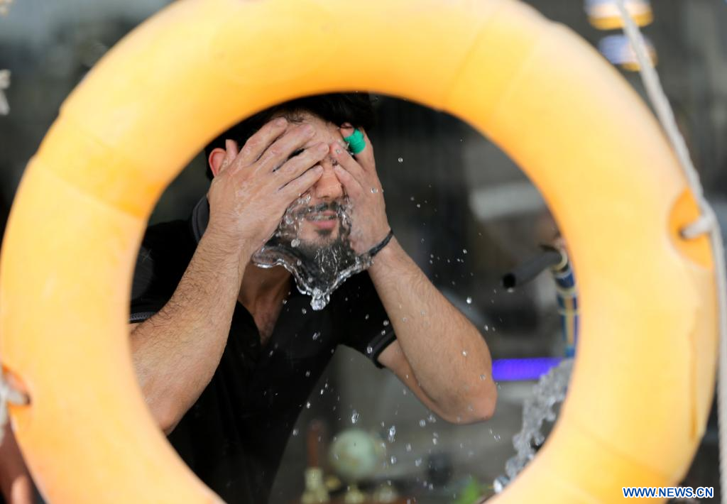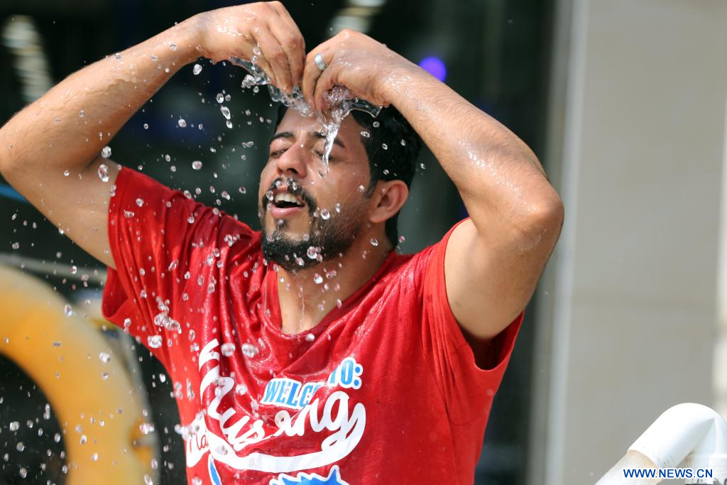 BAGDAD, 12 agosto, 2023 (Xinhua) -- Un hombre se lava la cara para refrescarse, en Bagdad, Irak, el 12 de agosto de 2023. Una ola de calor está azotando a Irak, donde las temperaturas superaron los 50 grados centígrados el sábado, dijo la Organización Meteorológica y Sismológica de Irak en un comunicado. Las temperaturas más altas de hasta 51 grados centígrados se registraron en las provincias de Bagdad, Najaf, Qadisiyah, Dhi Qar y Muthanna, de acuerdo con el comunicado. (Xinhua/Khalil Dawood)