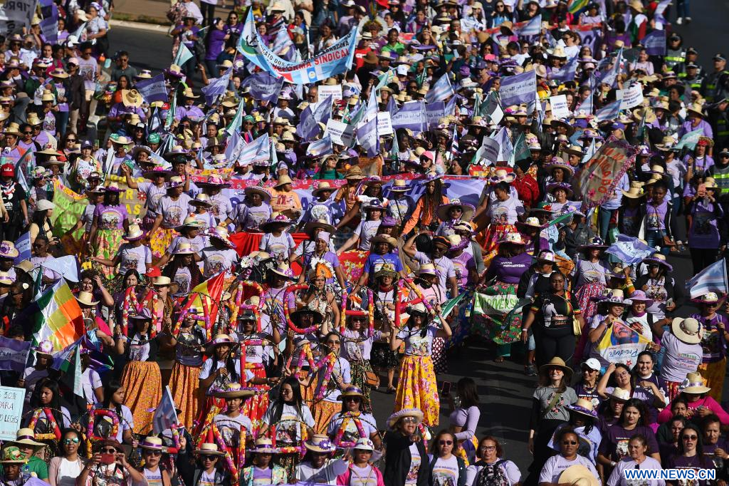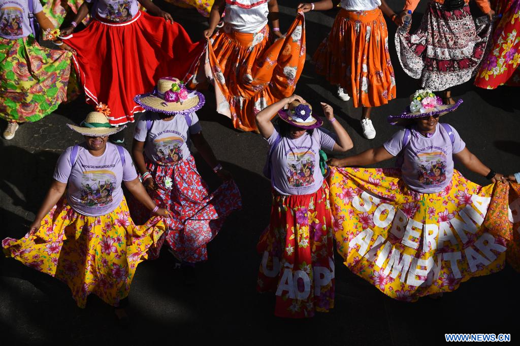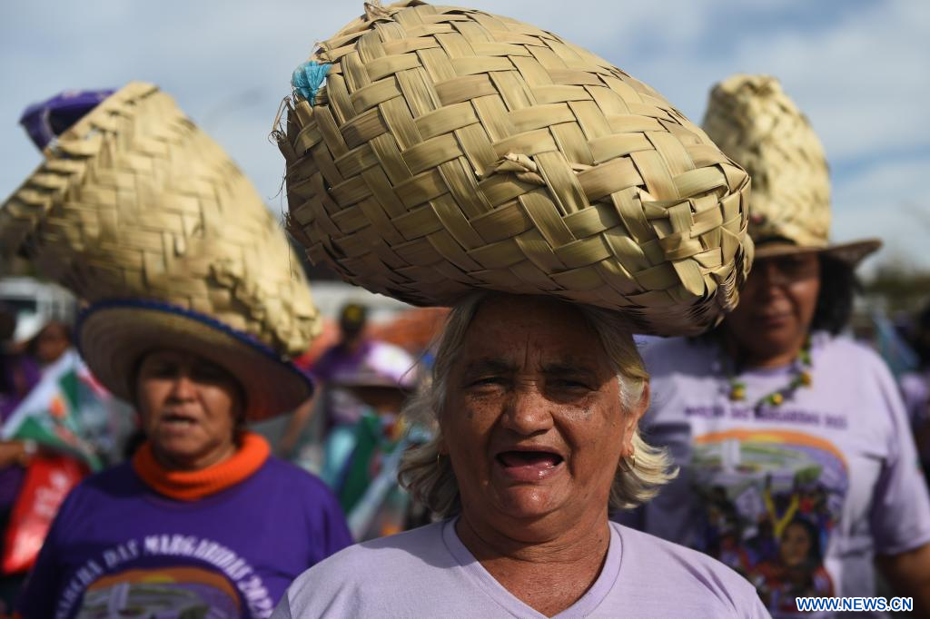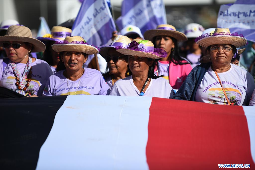 BRASILIA, 16 agosto, 2023 (Xinhua) -- Mujeres campesinas participan en la Marcha de las Margaritas, en Brasilia, Brasil, el 16 de agosto de 2023. (Xinhua/Lucio Tavora)