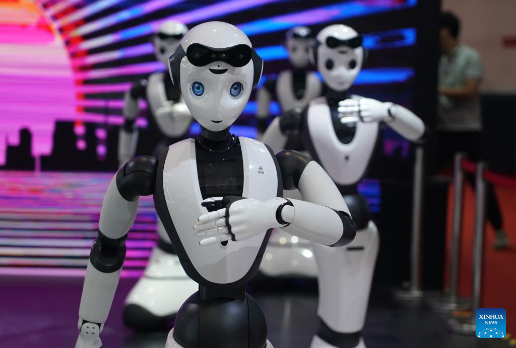 BEIJING, 16 agosto, 2023 (Xinhua) -- Robots humanoides realizan una presentación en la Conferencia Mundial de Robots 2023, en Beijing, capital de China, el 16 de agosto de 2023. La Conferencia Mundial de Robots 2023 se inauguró en Beijing el miércoles, mostrando logros de vanguardia y las últimas exhibiciones de la industria robótica. (Xinhua/Ren Chao)