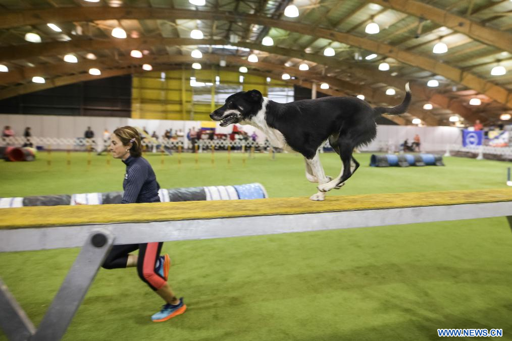 BOGOTA, 19 agosto, 2023 (Xinhua) -- Una mujer y su perro participan una competencia durante la octava edición de Expopet, en el recinto ferial Corferias, en Bogotá, Colombia el 19 de agosto de 2023. Miles de personas se dan cita este fin de semana en la capital colombiana para asistir a la octava edición de Expopet, la feria sobre el cuidado de las mascotas más importante del país y que reúne más de 180 expositores de todo lo referente a las denominadas familias multiespecie. (Xinhua/Str)